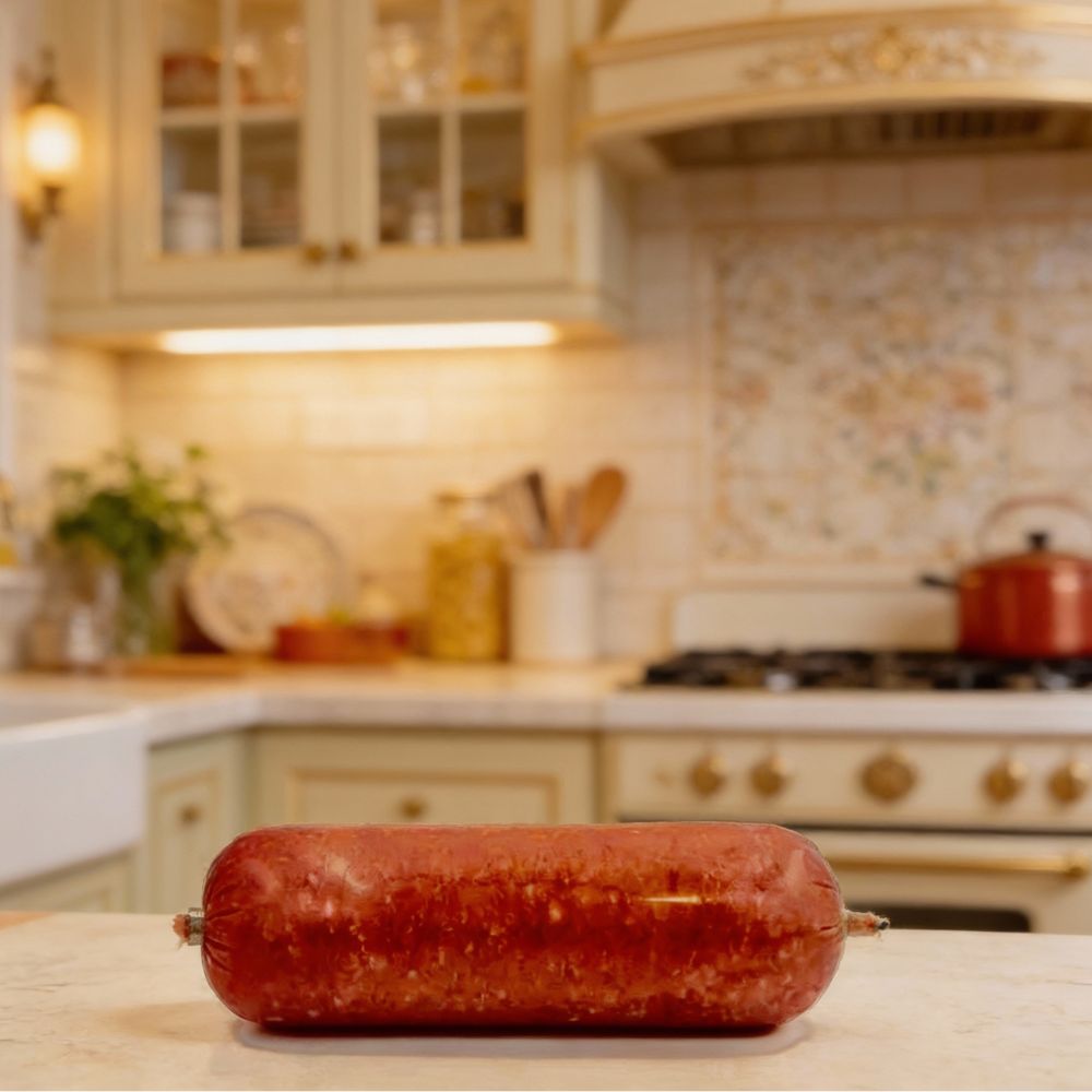 Bœuf haché de catégorie AAA, emballé en tube, tendre et savoureux, prêt à cuire.
