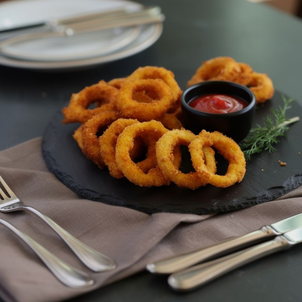 Les rondelles d’oignon sont des oignons coupés en anneaux, enrobés d’une panure légère et croustillante. Idéales comme accompagnement pour burgers, sandwiches, plats de viande ou comme collation gourmande à partager.